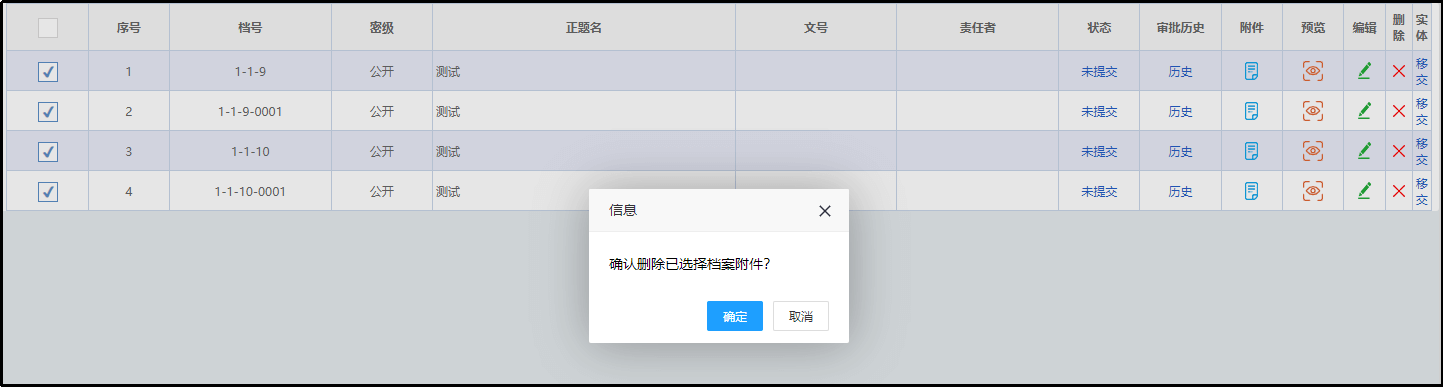 点击“数据操作”,用户“勾选”要删除附件的文件,点击“批量删除附件”即可。